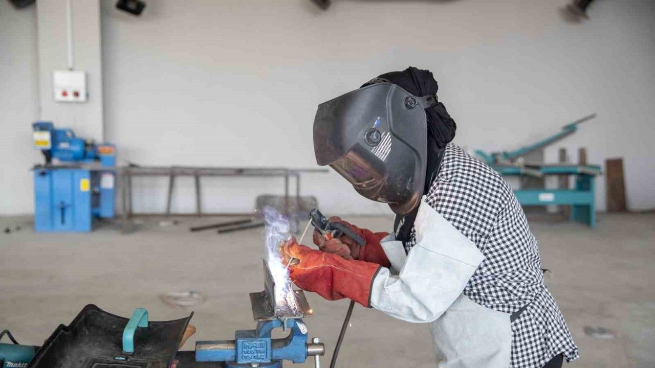 Mersin Büyükşehir Belediyesinin ‘mesleklerin cinsiyeti olmaz’ anlayışıyla hayata geçirdiği meslek edindirme kursları, her geçen gün bir kalifiye eleman daha yetiştirmeye devam ediyor. Sosyal Hizmetler Daire Başkanlığına bağlı olan Tırmıl Sanayi Sitesi’ndeki MERCEK Mesleki Eğitim Merkezinin kaynak atölyesinde eğitim gören tek kadın olan Sevgi Öz, yeteneğiyle kaynak işinin ‘erkek işi değil, ustalık işi’ olduğunu gösteriyor ve mesleklerin cinsiyeti olduğu algısını da bir bir yıkıyor.