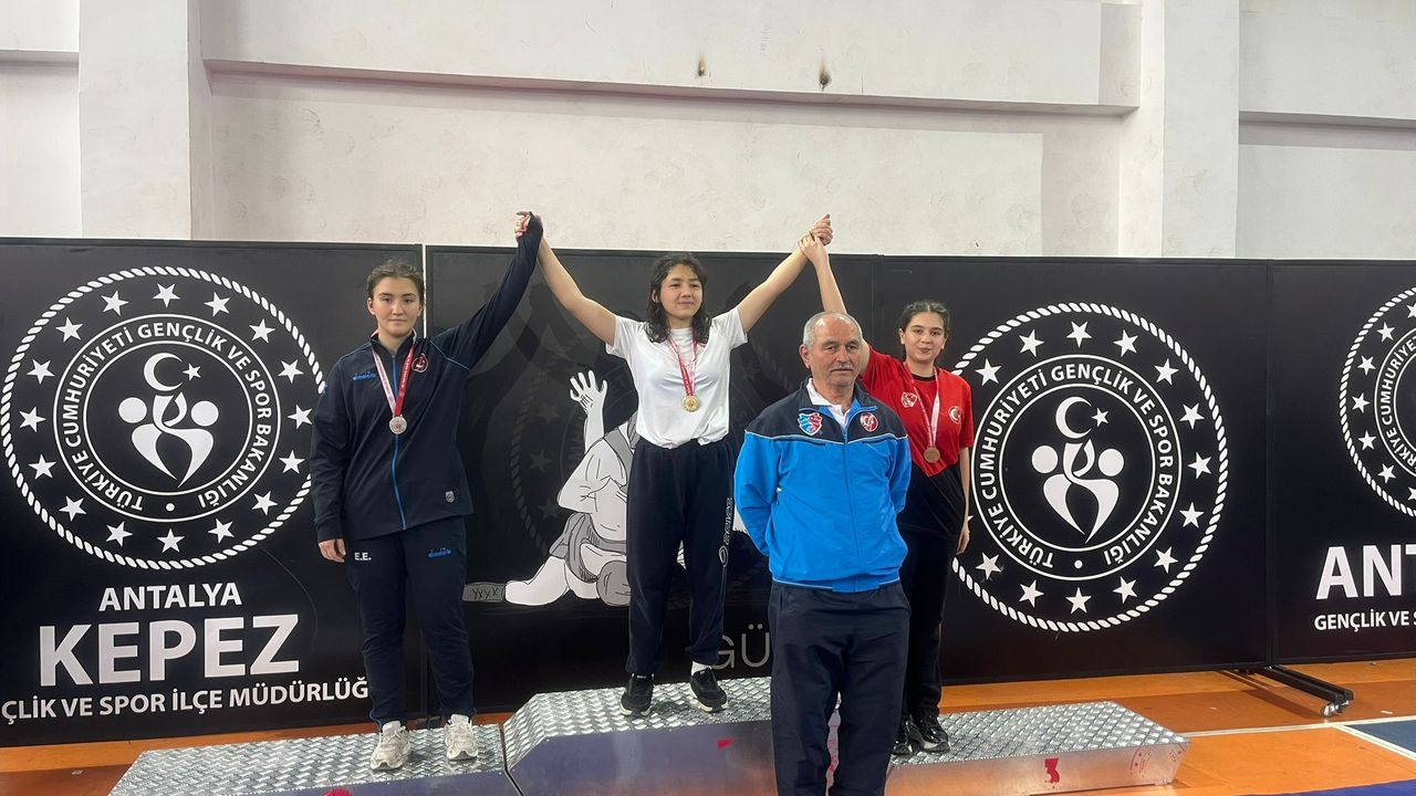 Serbest Güreş U-15 Kadınlar İl Şampiyonası'nda Semra Nur Durmaz 73 kiloda birinci, Esma Beren Yıkılmaz 58 kiloda üçüncü, Efsa Naz Kaya 66 kiloda üçüncü oldu. Gençlik ve Spor İlçe Müdürü Mevlüt Özen, '14- 15 Mart tarihlerinde Antalya'da düzenlenen Türkiye Güreş Federasyonu Serbest Güreş Antalya İl Birinciliği müsabakalarına katılan sporcularımızdan Semra Nur Durmaz kızımız kendi kategorisinde il birincisi, Esma Beren Yıkılmaz ve Efsa Naz Kaya kızlarımız kendi kategorilerinde il üçüncülüğü alarak ilçemize büyük bir sevinç yaşattı. Ayna zamanda bu 3 sporcumuz Türkiye Şampiyonası'nda ilçemizi ve Antalya'mızı temsil etmeye hak kazandı' dedi. (DHA)