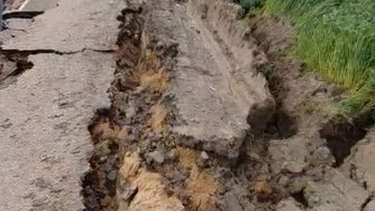 Kadirli'de günlerdir devam eden sağanak yağışın ardından Kızyusuflu Köyü ile Karatepe Aslantaş Açık Hava Müzesi arasındaki yolda heyelan meydana geldi. Bir otomobil heyelanda zarar gördü. Olayda şans eseri ölen ya da yaralanan olmazken, Osmaniye Özel İdaresi heyelan yaşanan yolda çalışmalara başladı. (DHA)