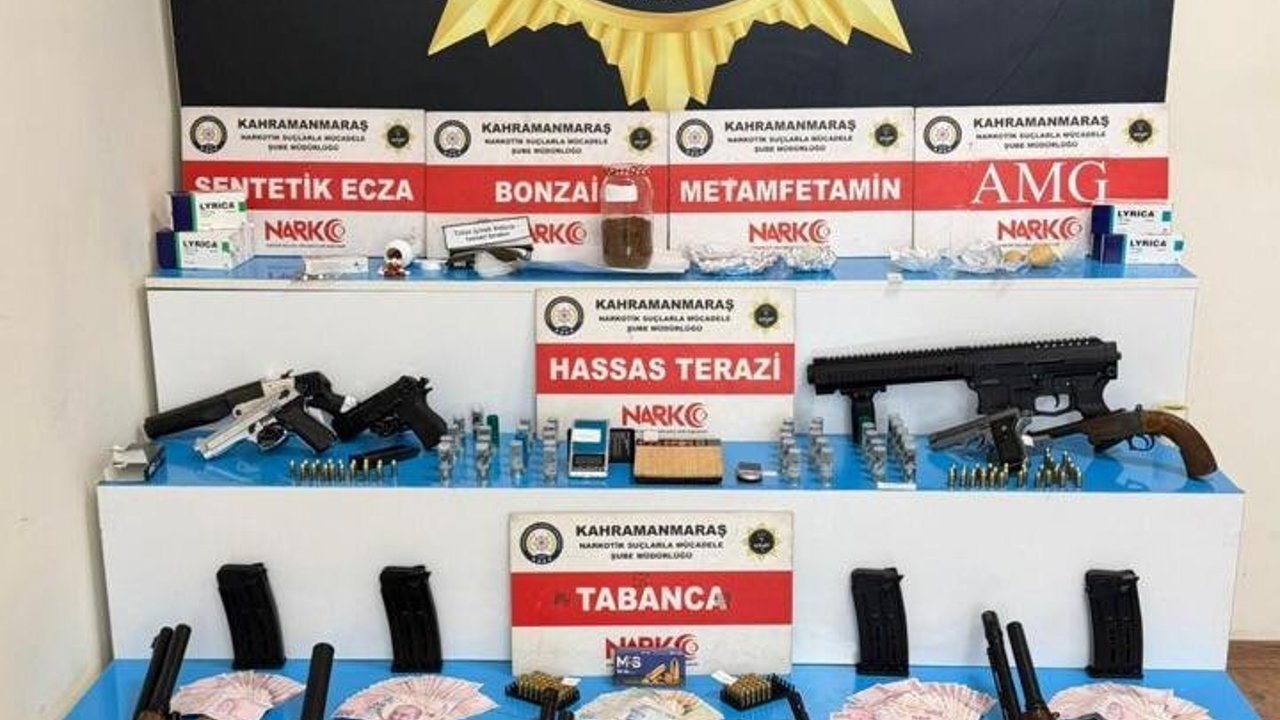 Narkotik Suçlarla Mücadele Şube Müdürlüğü ekipleri, uyuşturucu satıcılarına yönelik çalışma başlattı. Kahramanmaraş Cumhuriyet Başsavcılığı koordinesinde yürütülen çalışma sonucu, uyuşturucu satıcıları adım adım takip edildi. 3 ay süren teknik ve fiziki takip sonrası ekipler, 21 Nisan'da operasyon için düğmeye bastı ve Kahramanmaraş, İstanbul, Gaziantep, Tekirdağ ile Antalya'da belirlenen adreslere eş zamanlı operasyon düzenlendi. Operasyonda 58 kişi gözaltına alınırken, şüphelilerin ev ve iş yerlerinde yapılan aramalarda; uyuşturucu madde ile 5 tabanca, 7 av tüfeği, bu silahlara ait çok sayıda mermi ile suçtan elde edildiği düşünülen 21 bin lira ele geçirildi. 58 şüpheli, emniyetteki sorgularının ardından adliyeye sevk edildi. 'Uyuşturucu madde ticareti' suçlaması yöneltilen şüphelilerden 6'si savcılık sorgularının ardından serbest bırakılırken, 52'si nöbetçi sulh ceza hakimliğine çıkarıldı. Şüphelilerden 45'i tutuklanırken, 7'si adli kontrol kararıyla serbest bırakıldı. (DHA)