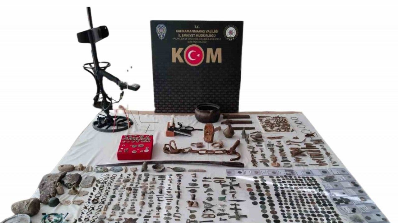 Kahramanmaraş’ta düzenlenen tarihi eser kaçakçılığı operasyonunda Roma Dönemi’ne ait çeşitli materyaller ele geçirildi.