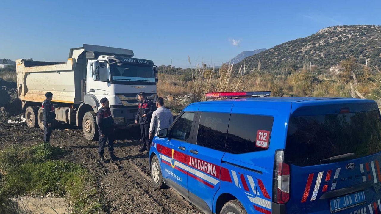 ANTALYA, (DHA)- KAŞ ilçesinde, Eşen Çayı kenarından izinsiz kum alındığını tespit eden jandarma ekipleri, faaliyeti durdurdu. Şüpheliler hakkında idari işlem başlatıldı.