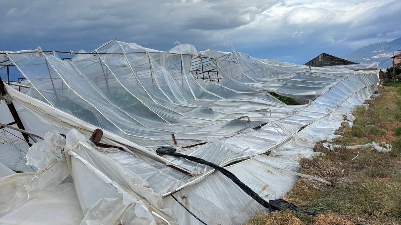 Ramazan SARIKAYALI/KAŞ, (DHA) - ANTALYA'nın Kaş ilçesinde fırtına nedeniyle tarım alanlarında seralar zarar gördü, ağaçlar devrildi.