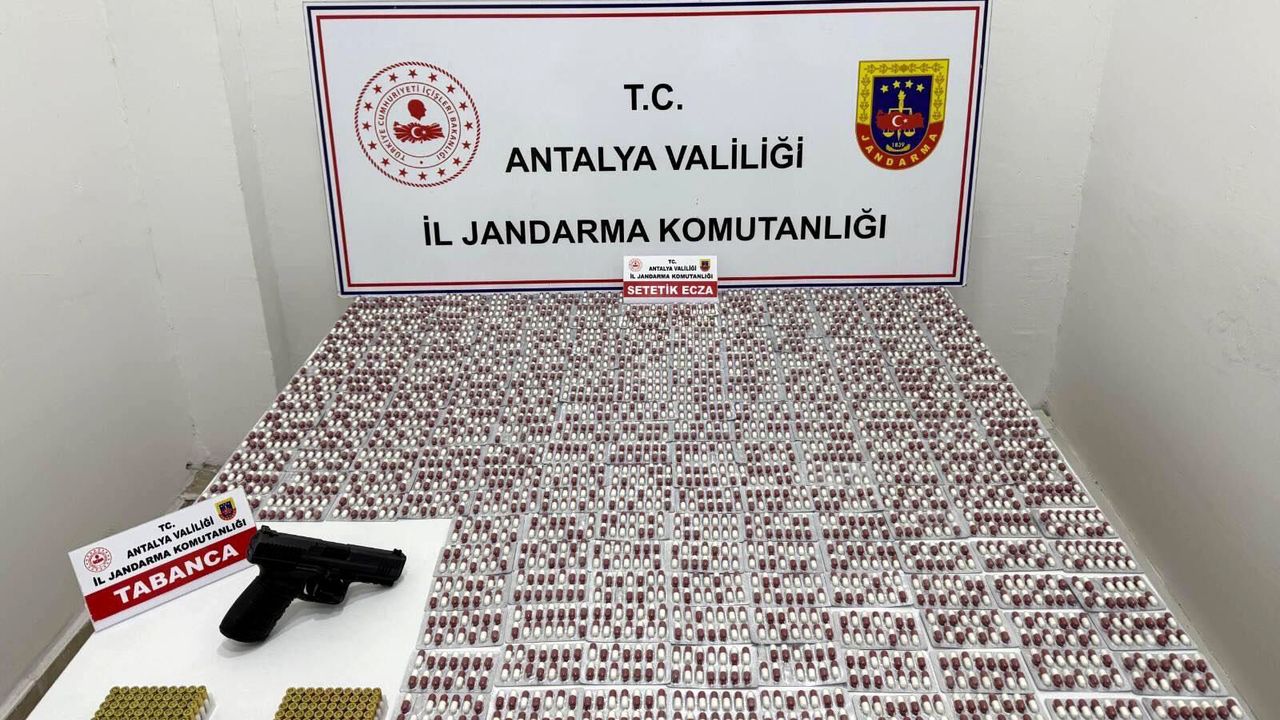 ANTALYA,(DHA)- ANTALYA'nın Kepez ilçesinde jandarma ekiplerince düzenlenen uyuşturucu operasyonunda 1298 sentetik uyuşturucu hap ile ruhsatsız tabanca ve 113 tabanca mermisi ele geçirildi.