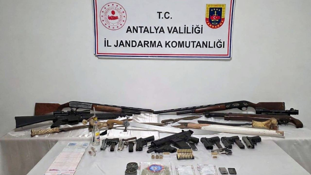 Aysu DURSUN/ANTALYA, (DHA)- KONYAALTI ilçesinde, jandarma ekiplerince düzenlenen uyuşturucu operasyonunda çok sayıda silah ve uyuşturucu madde ele geçirildi.