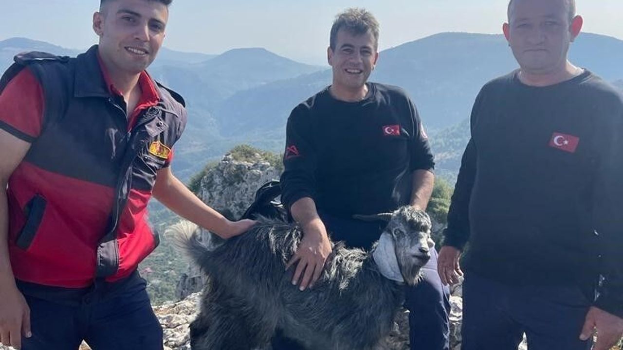 Mersin’in Çamlıyayla ilçesinde dağlık alanda kaybolarak kayalıklarda mahsur kalan keçi itfaiye ekiplerince kurtarıldı.