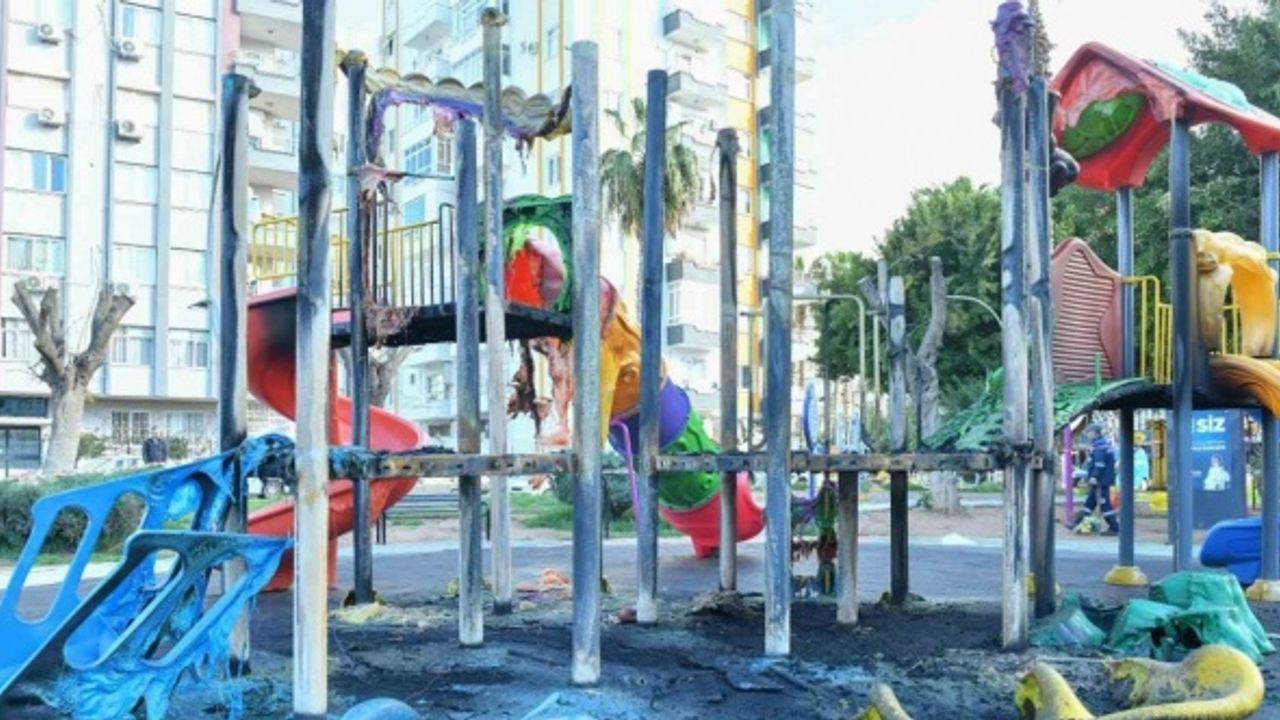 Mersin’de bir parkta bulunan çocuk oyun grupları, kimliği belirsiz kişi ya da kişiler tarafından yakıldı.
