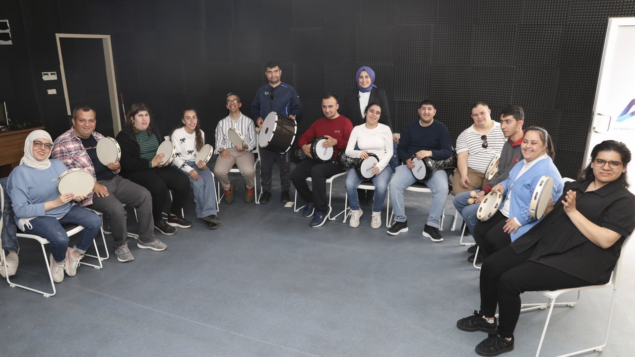 MERSİN, (DHA)- MERSİN'de Büyükşehir Belediyesi'nin Engelsiz Yaşam Merkezi'nde bulunan Müzik Atölyesi ile özel gereksinimli bireyler, hem ritim ve nota öğreniyor hem de eğlenerek kendilerini ifade ediyor.