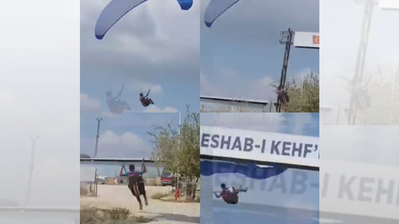 Tarsus ilçesinde yamaç paraşütü yapan bir sporcu, 'Eshab-ı Kehf’e Hoş Geldiniz' tabelasının direğine takıldı. Direkle askıda kalan sporcuya çevreden geçen motorcular yardım etti. Sağlık durumu iyi olduğu öğrenildi.