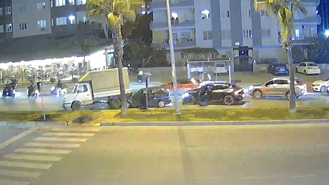 Soner AYDIN/MERSİN, (DHA)- MERSİN'de 3 otomobil ve 1 kamyonetin karıştığı zincirleme kaza, güvenlik kamerasına yansıdı.