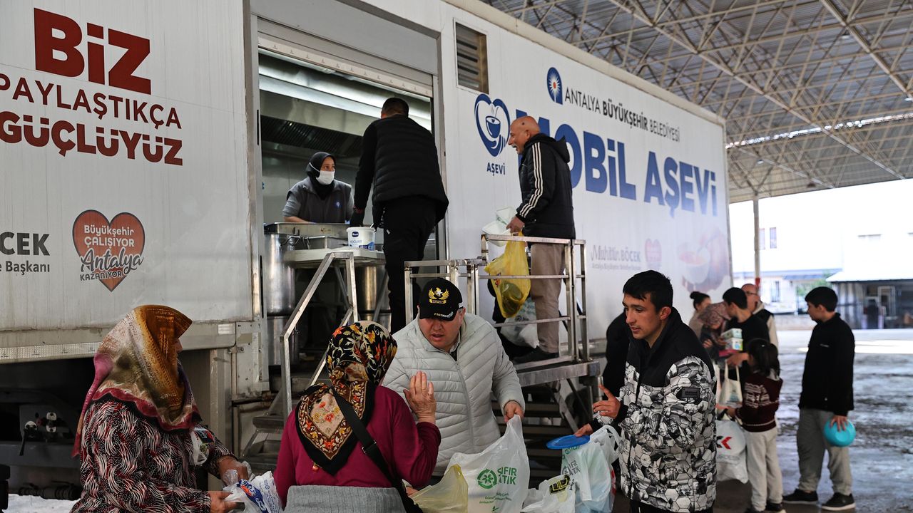 Antalya Büyükşehir Belediyesi Mobil Aşevi, ramazan ayı boyunca farklı mahallelerde sıcak yemek dağıtımını sürdürecek. Mobil Aşevi, 11 Mart'ta Muratpaşa Yeşildere Mahallesi Kültür ve Düğün Salonu Muhtarlık Evi'nde, 12 Mart'ta Kepez Şafak Mahallesi pazar yerinde, 13 Mart'ta Kepez Altınova Menderes Mahallesi muhtarlık önünde, 14 Mart'ta Muratpaşa Gebizli Mahallesi muhtarlık yanında vatandaşlarla buluşacak. Dağıtımlar 15 Mart'ta Kepez Teomanpaşa Mahallesi pazar yerinde, 16 Mart'ta Kepez Karşıyaka Mahallesi muhtarlık önünde, 17 Mart'ta Kepez Fevzi Çakmak Mahallesi pazar yerinde, 18 Mart'ta Kepez Göçerler Mahallesi Cemal Yalım Parkı'nda ve 19 Mart'ta Kepez Fatih Mahallesi muhtarlık arkasında saat 18.00'de gerçekleştirilecek.(DHA)