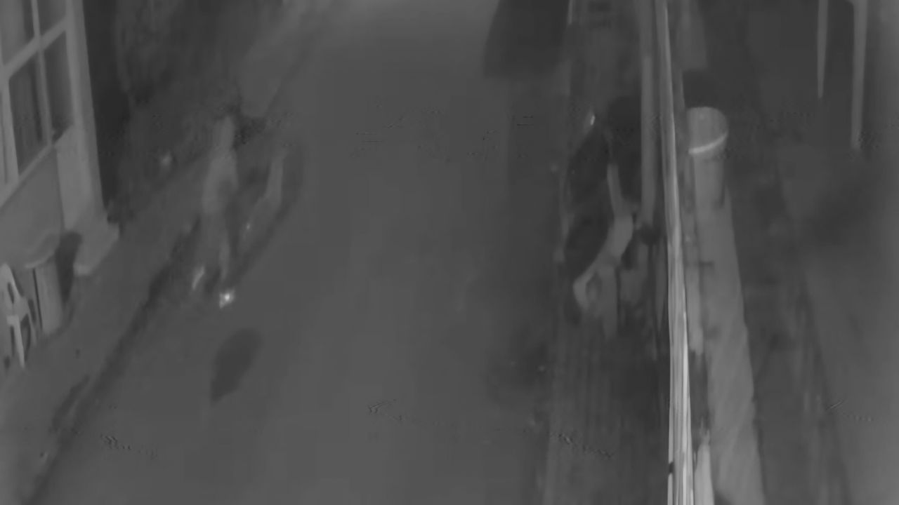 Alican GÜMÜŞ/HATAY, (DHA)-HATAY'ın Samandağ ilçesinde 2 kişi, park halindeki motosikleti sürükleyerek çaldı. O anlar, güvenlik kamerasına yansıdı.