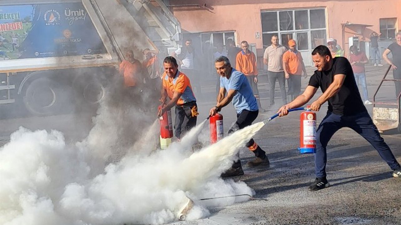 Topçular Mahallesi’nde bulunan Temizlik İşleri Müdürlüğü’ndeki tatbikat, Afet İşleri Müdürlüğü’nce gerçekleştirildi. Sivil savunma uzmanınca verilen teorik ve uygulamalı eğitimde olası bir yangın durumunda alınacak önlemler bilinçli hareket edilerek oluşan hasarın en asgari düzeye indirilmesi, herhangi bir kargaşaya mahal verilmeden sorumluluk ve görev bilinciyle hareket edilmesi hedeflendi.