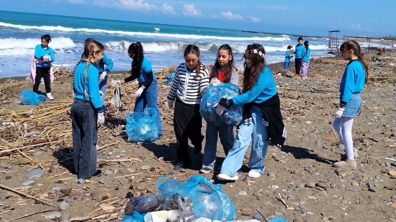 Ufuk AKTUĞ/ARSUZ(Hatay),(DHA)- HATAY'ın Arsuz ilçesinde ilkokul öğrencileri sahilde temizlik yaptı.