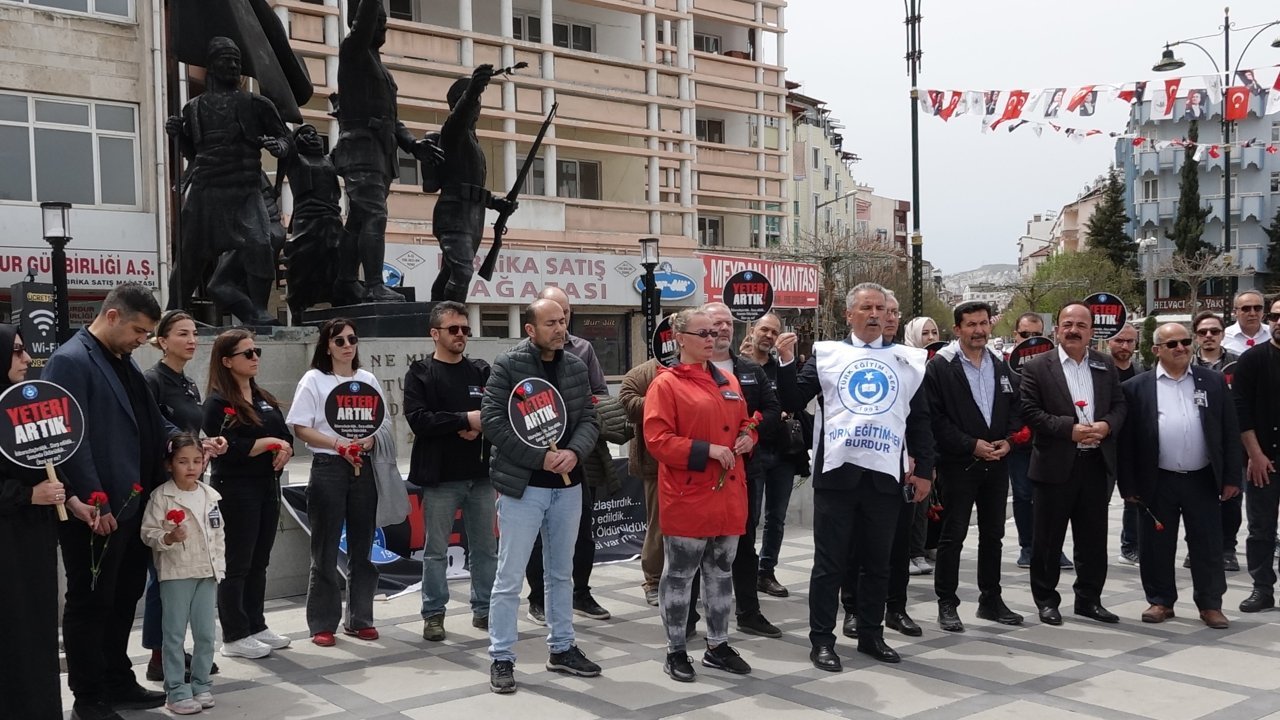 Cumhuriyet Meydanı'nda, Şanlıurfa ve Kahramanmaraş'ta meydana gelen okul baskınları ile ilgili basın açıklaması yapan Türk Eğitim Sen Şube Başkanı Orhan Akın, 'Biz çok üzüntülü, endişeli ve her şeyden önce çok öfkeliyiz. Bu öfkemizin sebebi eli öpülesi öğretmenlerimizin, okullarda tebessüm ve kahkahaların yükselmesi gereken yavrularımızın, geleceğe ait hayallerinin yeşermesi gereken yavrularımızın eğitim yuvalarında son zamanlarda gelişen bu olaylar hepimizi derinden yaralamıştır. Güzel ülkemizde eğitimciler olarak bu problemlerin nedenlerini ve çözüm yollarını iki gün önce kamuoyu ile paylaştık. Biz burada suçlu aramıyoruz. Velilerimiz 'izin yapıyorlar, tatil yapıyorlar' diye yorum yapıyor. Biz ömrümüzü bu yavrularımıza adamışız, kutsal bir mesleği yapıyoruz. Ancak eli öpülesi öğretmenlerimiz, karşısında saygı gösterdiğimiz öğretmenler İstanbul'da bir öğrenci tarafından nasıl bıçak sokacak hale geldi, bunun araştırılması lazım' dedi. Konuşmanın ardından öğretmenler ellerindeki karanfili Atatürk anıtının önüne bıraktı.