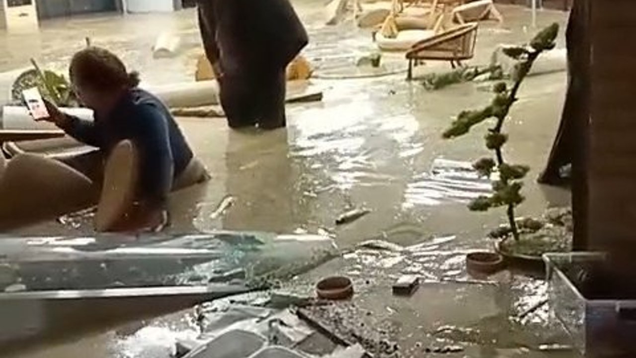 Öte yandan Kadirli Belediyesi'nin yakınındaki restoranı da su bastı. Su seviyesinin yükselmesiyle restoranda mahsur kalan 5 çalışanın kurtarılmayı bekledikleri anlar da cep telefonu kamerasıyla görüntülendi. Kayıtta bu kişilerin büyük panik yaşadığı görüldü. (DHA)