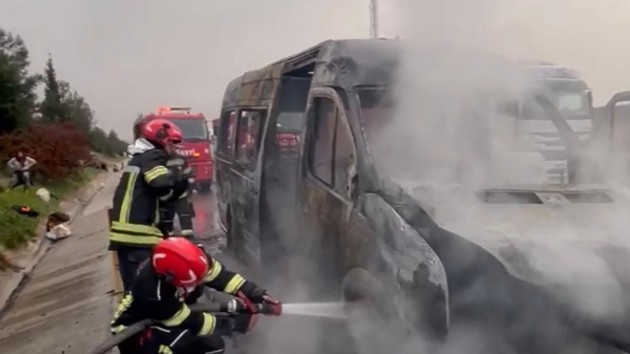 Akşam saatlerinde Tarsus-Adana-Gaziantep (TAG) Otoyolu'nun Toprakkale ilçesi Sakızgediği mevkisinde seyir halindeki tarım işçilerini taşıyan servis minibüsü, alev alarak yanmaya başladı. Aracı yol kenarında durduran sürücü, yolcuları tahliye ettikten sonra durumu itfaiyeye bildirdi. Alevler kısa sürede minibüsü sardı. İhbar üzerine bölgeye itfaiye, sağlık ve polis ekipleri sevk edildi. Yangın, itfaiye ekibinin müdahalesiyle kontrol altına alınarak söndürüldü. Yangın nedeniyle minibüs, kullanılmaz hale geldi. Yangının çıkış nedeninin belirlenmesi için inceleme başlatıldı. (DHA)