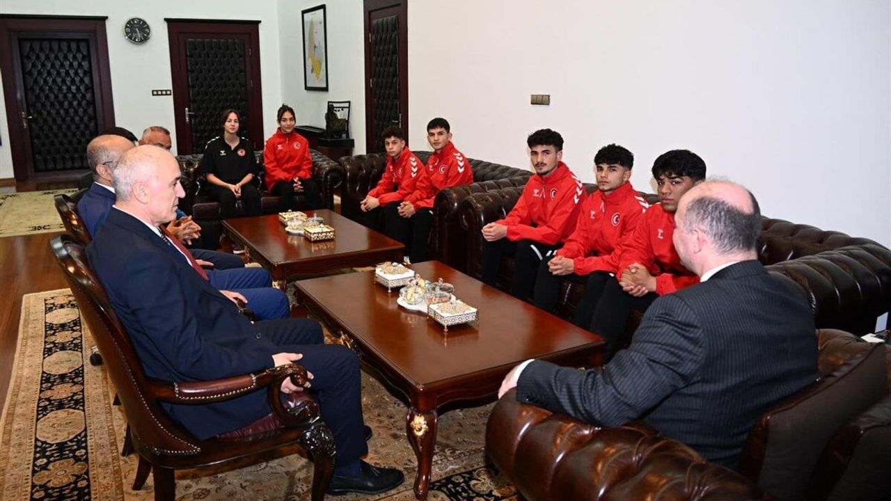 Osmaniyeli 9 sporcu, katıldıkları şampiyonalarda Türkiye derecesi elde etti. Sporcular, Gençlik ve Spor İl Müdürü Yusuf Çebi ve antrenörleriyle birlikte Vali Fatih Serdengeçti'yi ziyaret etti. Serdengeçti, 'Türkiye şampiyonluklarıyla, rekor derecelerle ve millî takım yolculuğuna uzanan önemli başarılarla bizlere büyük bir gurur yaşatan sporcularımızı kutluyorum. İnanıyorum ki sporcularımızın başarıları, şehrimizde spora gönül veren nice gencimize de ilham olacaktır. Dereceye giren tüm sporcularımızı, onları yetiştiren kıymetli antrenörlerimizi ve her daim yanlarında duran ailelerini gönülden kutluyorum'dedi.