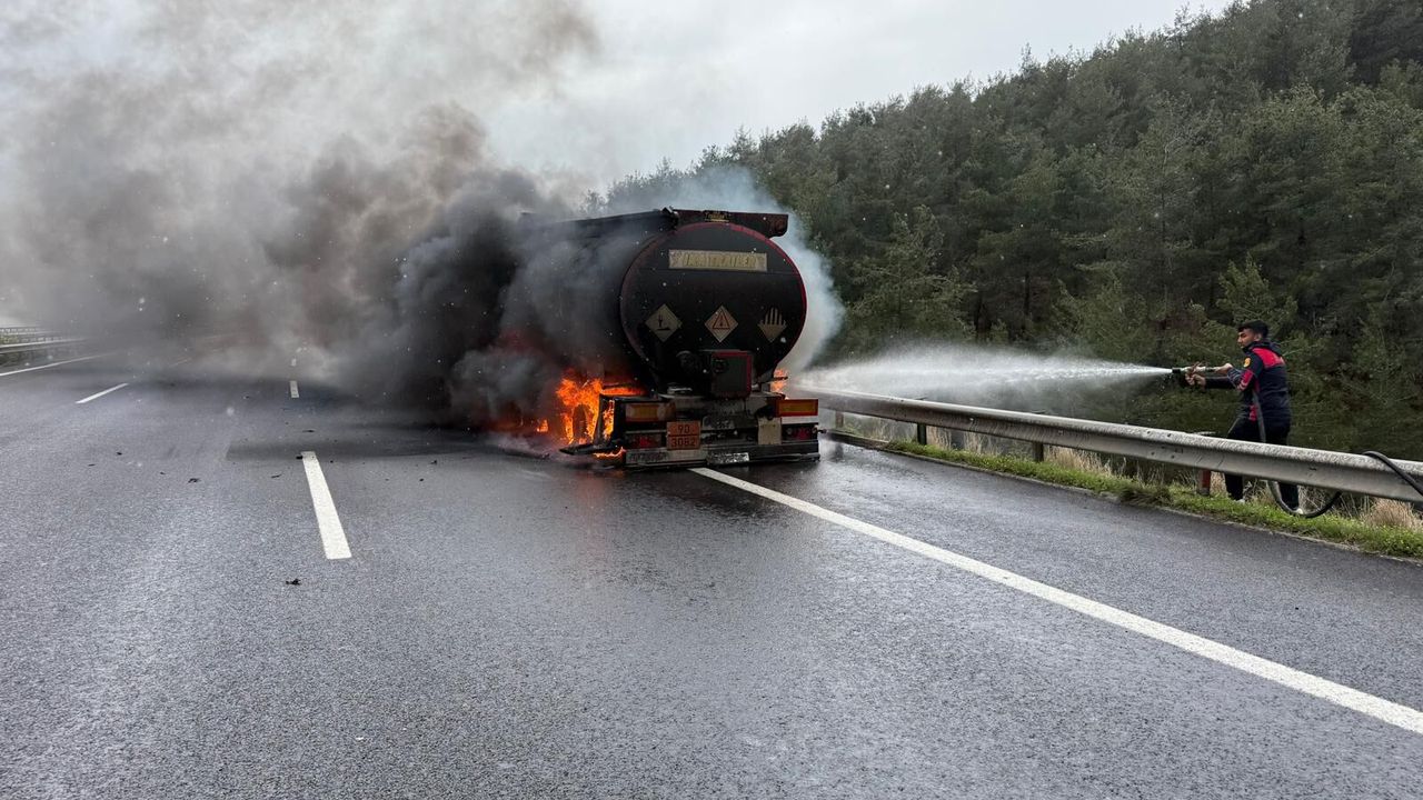 Tarsus-Adana-Gaziantep (TAG) Otoyolu'nda ilerleyen asfalt yüklü tankerde bilinmeyen nedenle yangın çıktı. Alevleri fark eden şoför, aracı emniyet şeridinde durdurarak 112 Acil Çağrı Merkezi'nden yardım istedi. İhbarla adrese itfaiye, sağlık ve jandarma ekipleri sevk edildi. Çevrede güvenlik önlemi alınmasının ardından itfaiye ekipleri yangını söndürdü. Yangının çıkış sebebiyle ilgili inceleme başlatıldı. (DHA)