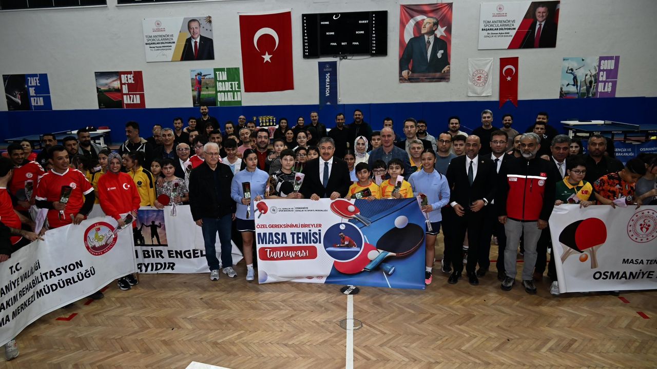 İbrahim EMÜL/OSMANİYE, (DHA) - OSMANİYE'de, 2025 Aile Yılı etkinlikleri kapsamında özel gereksinimli bireyler için masa tenisi turnuvası düzenlendi. Merkez Spor Salonu'nda Osmaniye Gençlik ve Spor İl Müdürlüğü ile Türkiye Masa Tenisi Federasyonu Osmaniye İl Temsilciliği iş birliğinde gerçekleştirilen turnuvaya minikler, küçükler, gençler ve büyükler kategorilerinde toplam 90 sporcu katıldı. Turnuvanın açılışını yapan Vali Erdinç Yılmaz, sporcularla masa tenisi oynadı. Sporun birleştirici ve iyileştirici yönüne dikkat çeken Vali Yılmaz, turnuvanın özel gereksinimli bireylerin sosyal hayata aktif katılımını desteklemek amacıyla gerçekleştirildiğini ifade etti. Vali Yılmaz ve beraberindeki protokol üyeleri sporculara çiçek takdim ederek başarılar diledi. Üç gün sürecek turnuva sonunda dereceye giren sporculara düzenlenecek törenle ödülleri verileceği kaydedildi. (DHA)