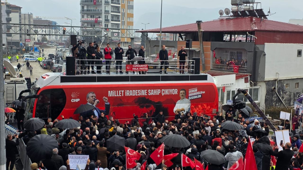 CHP Genel Başkanı Özgür Özel, Hatay'da gerçekleştirilen 'Millet İradesine Sahip Çıkıyor' mitinginde konuştu. Defne Çekmece Kavşağı'nda yağmur altında gerçekleştirilen mitingde vatandaşlarla bir araya gelen Özel, 'Bu şehri büyükşehir olduğundan beri üç dönemin ikisinde kazandık. Son seçimlerde Hatay'da talihsizlikler yaşadık, hatalar yaptık ve 31 Mart zafer gecesinde elimizde olan tüm belediyeleri kazanırken, üstüne büyükşehirler kazanırken, 21 il kazanırken, Türkiye'nin yüzde 65'ini kazanırken, maalesef Hatay'ı kaybettik. Hatay'ın bize en çok ihtiyacı olan zamanda evet, çok küçük bir farkla, hileyle, itirazlar dinlenmeden adeta oylar, irade çalındı ama oraya kadar bırakmamak lazımdı. Açık farkla, bütün Türkiye'de olduğu gibi kazanmak lazımdı. Hatay'ı duyduk, kusurumuzu bildik. Bundan sonrası için, ilk seçimde Hatay'ı bir daha bırakmamak üzere Hatay'a sarılmaya geliyoruz. Kimse unutmasın, bu şehirde bizim bir hikayemiz var. Hatay partinin ilk genel başkanının, ülkenin ilk Cumhurbaşkanı'nın şahsi meselesiydi. Bu bize Ata'mızdan vasiyettir, emanettir. Hatay Cumhuriyet Halk Partisi'nin genel başkanlarının şahsi meselesidir, Cumhuriyet Halk Partililerin ortak meselesi, ortak aşkıdır Hatay. Hatay'daki milletvekillerimiz Hatay'ın sorunlarını her gün hem Meclis kürsüsünde, hem her fırsatta Hatay'ın her köşesinde dile getirmek için çalışıyorlar' dedi.