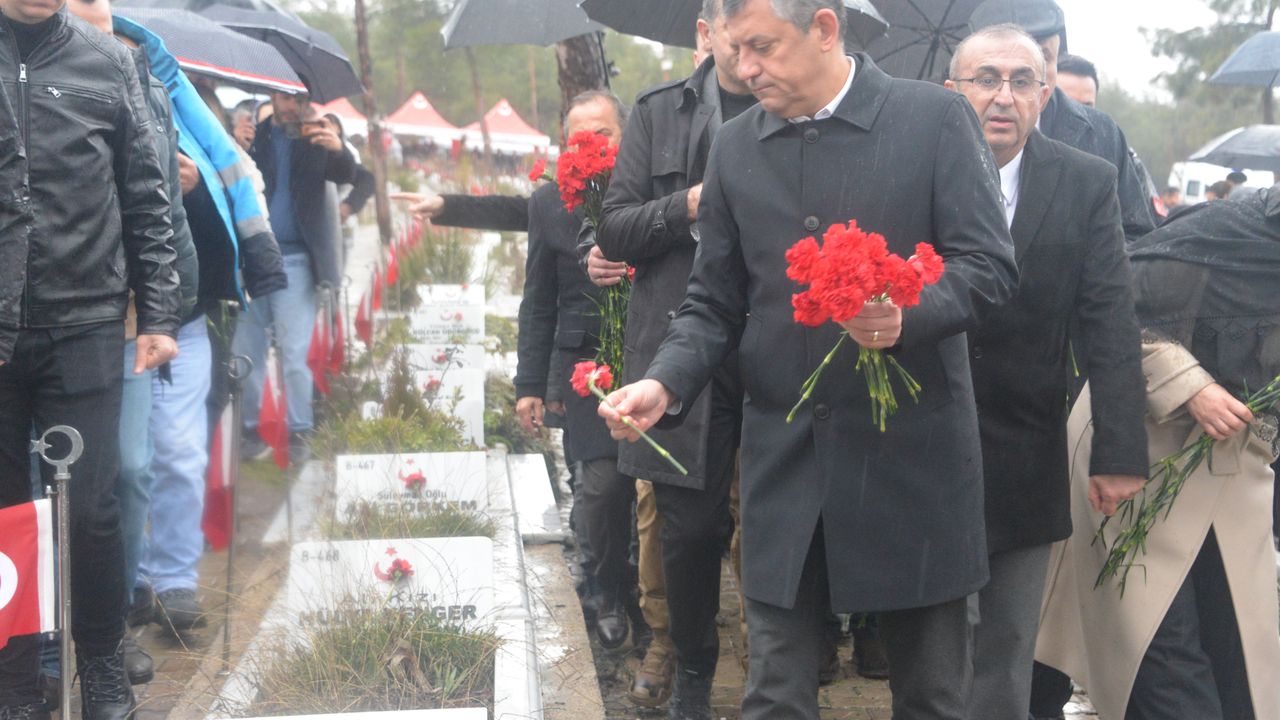 Milletvekilleri ile Ankara Büyükşehir Belediye Başkanı Mansur Yavaş'ın da eşlik ettiği CHP Genel Başkanı Özgür Özel, ilk olarak Kapıçam Şehir Mezarlığı'na geçti. Özel, burada depremde yakınlarını kaybedenlerle bir araya geldi. Kuran-ı Kerim okunup dua edilmesinin ardından Özel, beraberindekilerle depremde hayatını kaybedenlerin mezarlarına karanfil bıraktı.