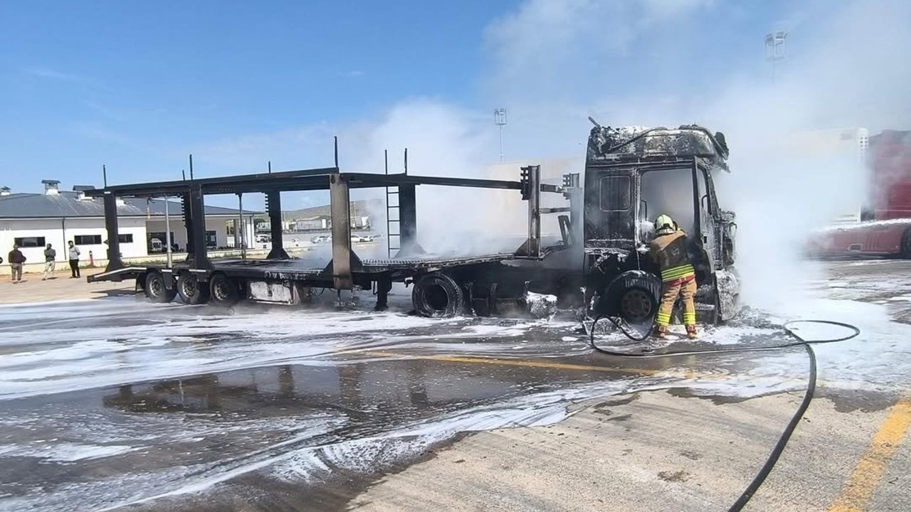 İlçedeki Cilvegözü TIR Parkı'nda park halindeki bir TIR çekicisinin motor bölümünde bilinmeyen nedenle yangın çıktı. Alevler kısa sürede TIR'ı sardı. Çevredekilerin ihbarıyla adrese itfaiye ekipleri sevk edildi. Ekipler, yangını kısa sürede söndürdü. TIR, kullanılamaz hale geldi. Yangının çıkış sebebiyle ilgili inceleme başlatıldı. (DHA)