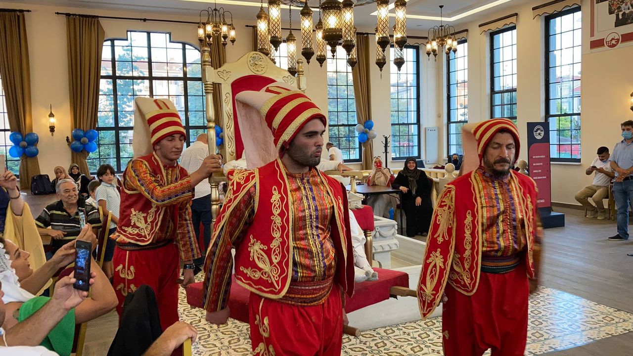 · Sünnet çocuğu, mehter marşı eşliğinde yeniçerilerin omzunda salona giriş yapar.