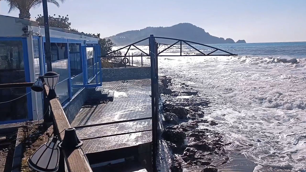 Dinek Mahallesi'nde dün kuvvetli rüzgar nedeniyle oluşan dev dalga, deniz kenarındaki restorana kadar ulaştı. Restoran çevresindeki cam korkuluğu aşan dalga, masa ve sandalyeleri sürükledi. Temizlik yapan restoran çalışanı da dalganın etkisiyle yere düştü. Sürüklenen restoran çalışanının dalgadan kaçmaya çalıştığı anlar, kameraya yansıdı. Bu sırada yemek yiyen 2 müşteri de korkuyla masadan kalktı. Dalga nedeniyle su basan restoranda çalışanlar ve müşterinin yaşadığı panik, güvenlik kamerasına yansıdı. (DHA)