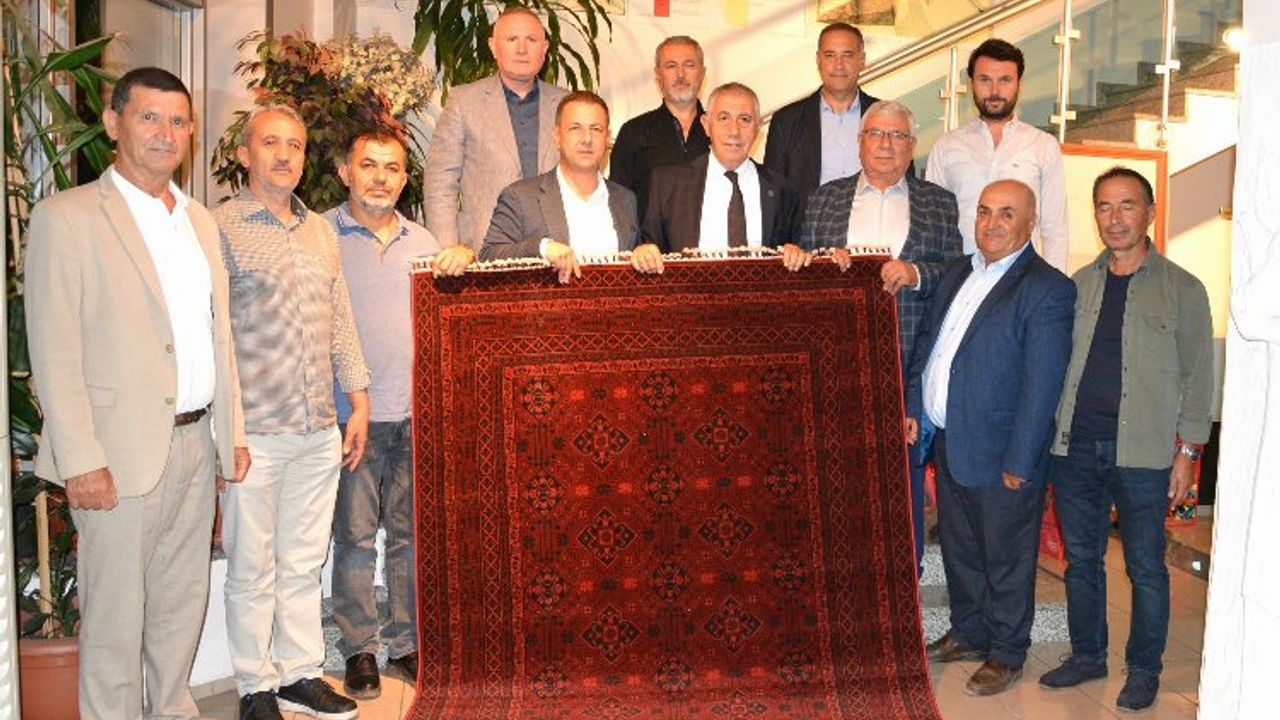 Demirci heyeti, toplantı sonunda Salihli TSO’ya, ünü ülke sınırlarını aşan ve güçlü bir marka haline gelen Demirci halısından nadide bir parçayı hediye etti. Salihli ve Demirci iş çevrelerinin temsilcileri Salihli TSO önünde bir hatıra fotoğrafı çektirdi.
