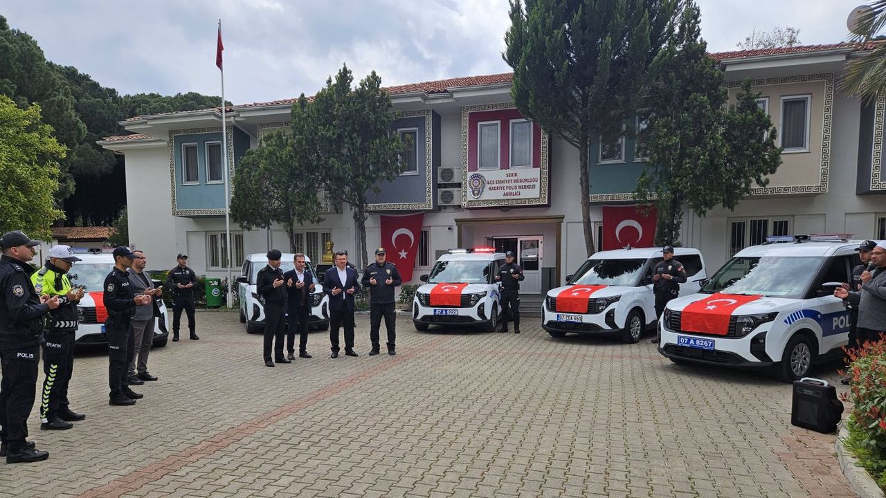 Kaymakam Cemal Şahin, emniyet mensuplarıyla bayramlaşmanın ve 5 yeni aracı hizmete sunmanın mutluluğunu yaşadıklarını dile getirerek, 'Serik Merkezi Asayiş Hizmetleri Destekleme Derneği tarafından Serik İlçe Emniyet Müdürlüğü'ne hibe edilen 5 aracımız ilçe emniyet müdürlüğümüz bünyesinde hizmet vermeye başladı. Araçlar ilçedeki güvenlik ve asayiş hizmetlerine katkı sağlayacaktır. Kadriye Polis Karakolu'ndaki törenin ardından görevi başında bulunan emniyet mensuplarımızı ziyaret edip bayramlaştık' dedi. (DHA)