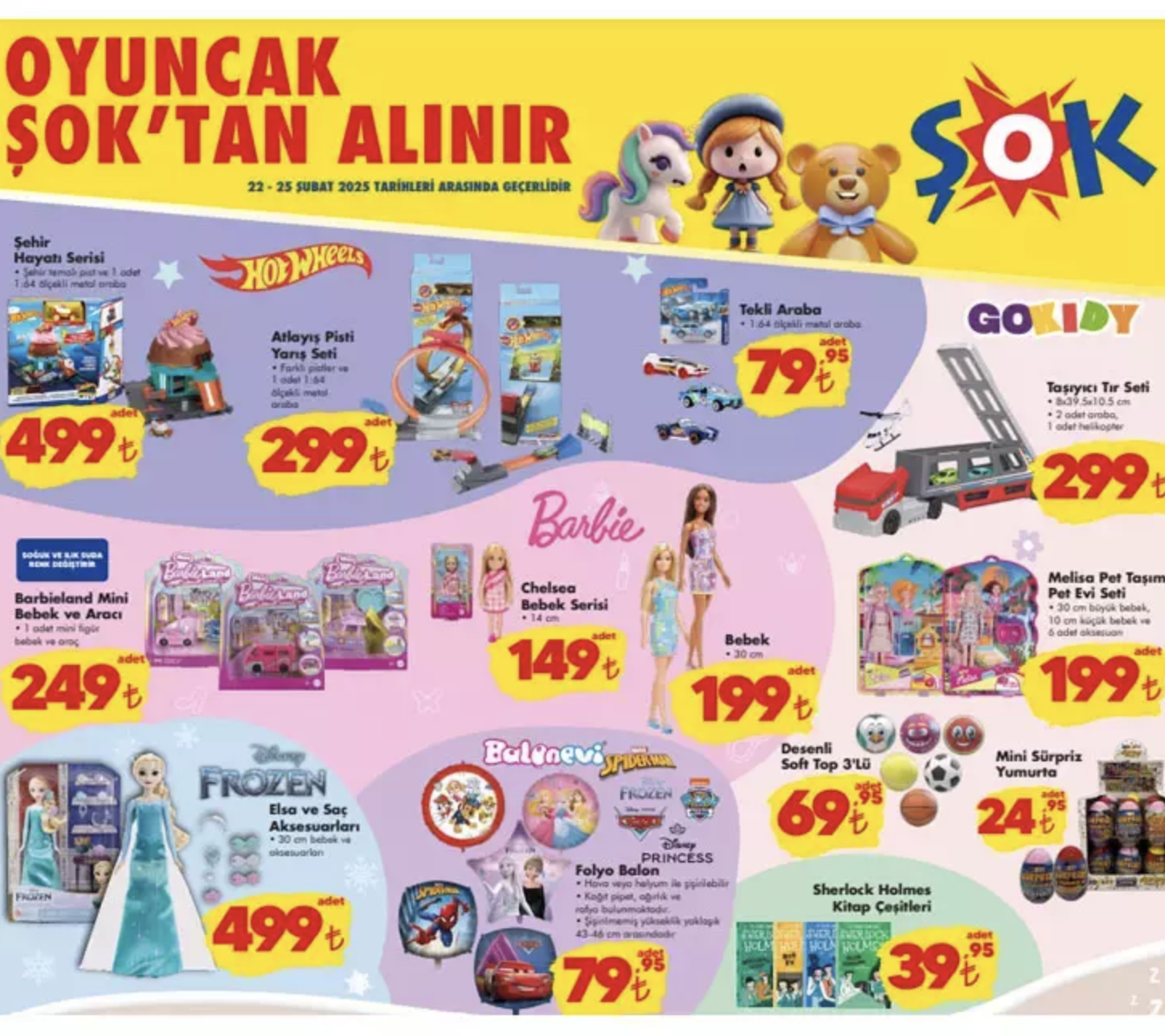 ŞOK 22-25 Şubat kataloğu, özellikle oyuncaklar ve ev tekstili ürünleri ile dikkat çekiyor. Ailelerin ve ev sahiplerinin beklediği fırsatlar, ŞOK markette bu hafta sonu satışa sunuluyor. Bu fırsatlar sadece sınırlı bir süreyle geçerli olacak, o yüzden acele edin!