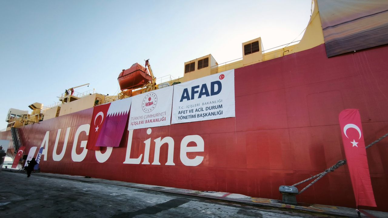Afet ve Acil Durum Yönetimi Başkanlığı'nca Katar Kalkınma Fonu desteğiyle 'İyilik yolunda bir aradayız' sloganı altında hazırlanan 2 bin 600 ton insani yardım malzemesi, gemiye yüklendi. Mersin Limanı'nda düzenlenen uğurlama törenine; AFAD Başkanı Ali Hamza Pehlivan, Mersin Valisi Atilla Toros, AK Parti Genel Başkan Yardımcısı ve Dış İlişkiler Başkanı Zafer Sırakaya, Katar Kalkınma Fonu Temsilcisi Yusuf Ahmet, sivil toplum kuruluşu temsilcileri ve gönüllüler katıldı.