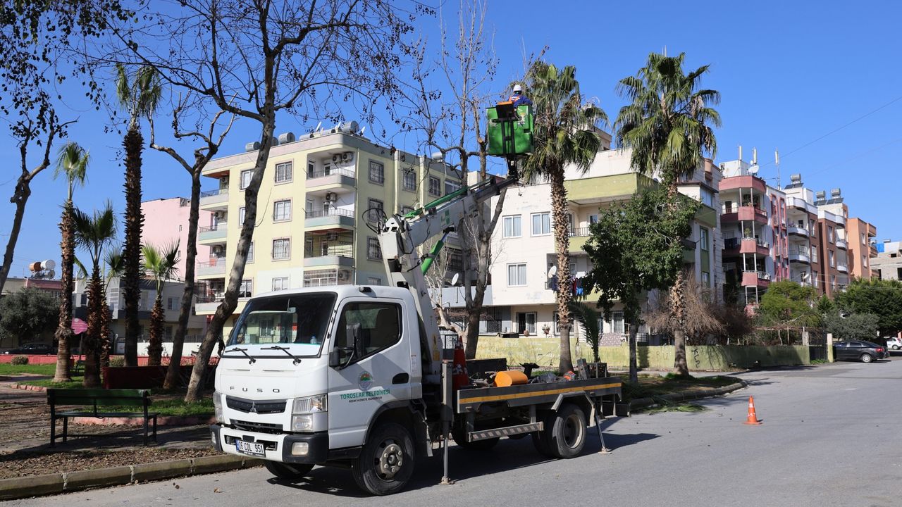 Toroslar Belediyesi Park ve Bahçeler Müdürlüğü ekipleri tarafından yürütülen çalışmalar kapsamında, park, yeşil alan ve sokaklardaki ağaçlarda kapsamlı kış budaması gerçekleştiriliyor. Yapılan budama çalışmalarıyla, ağaçların sağlıklı gelişimi desteklenirken; kurumuş, kırılma riski taşıyan ve çevre için tehlike oluşturan dallar titizlikle temizleniyor. Özellikle yol kenarlarında elektrik tellerine temas eden, yaya ve araç trafiğini tehdit eden dallar gerekli güvenlik önlemleri alınarak budanıyor. Bu sayede hem olası kazaların önüne geçiliyor hem de ağaçların daha güçlü ve dengeli büyümesi sağlanıyor. Ekipler, ilçe genelinde planlı bir program dâhilinde çalışmalarını sürdürürken, belediyenin Çözüm Merkezi'nden gelen talepleri de dikkate alıyor. Dilekçe ile yapılan başvurular da değerlendirilerek ihtiyaç duyulan noktalarda budama işlemleri gerçekleştiriliyor. (DHA)
