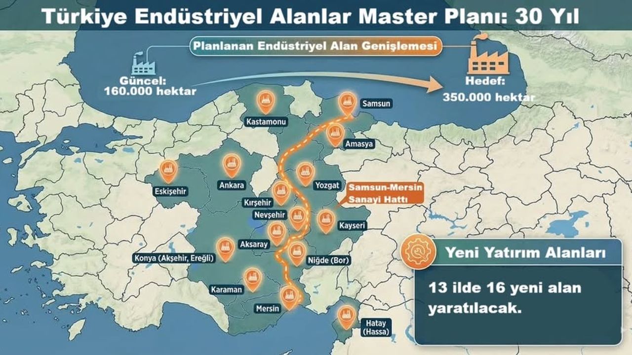 Sanayi planının en dikkat çeken ayaklarından biri Samsun–Mersin sanayi koridoru oldu. Bu hat boyunca 13 ilde, toplam 59 bin hektarlık alana yayılan 16 yeni sanayi yatırım bölgesi planlandı.
