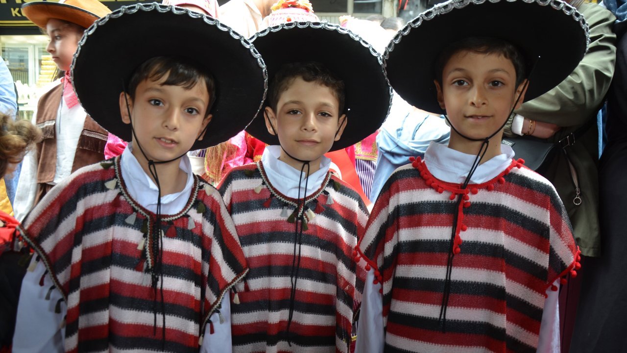 Akçaalan İlköğretim Okulu 3'üncü sınıf öğrencileri 9 yaşındaki Emir, Yiğit ve Yağız Tunç adlı üçüzler, Cumhuriyet Meydanı'nda düzenlenen 23 Nisan etkinliklerine katıldı. Kardeşler hem giydikleri kovboy kıyafetleri eşliğinde sundukları gösterileri hem de üçüz olmalarıyla vatandaşların ilgisini çekti. Üçüzleri izlemeye gelen anne Hatice Tunç ve baba Halil Tunç da duygusal anlar yaşadı. Halil Tunç, 23 Nisan'ı çocuklarıyla kutlamanın mutluluğunu ve heyecanını yaşadığını söyledi. Hatice Tunç da '23 Nisan bütün çocuklarımızın günü. İyi ki varlar. Değerli öğretmenlerimize düzenledikleri etkinlikle bizlere güzel bir armağan hediye ettikleri için teşekkür ediyorum' dedi. Üçüz annesi olmanın çok güzel bir duygu olduğunu belirten Hatice Tunç, bakımları konusunda sıkıntı yaşamadıklarını sözlerine ekledi. (DHA)