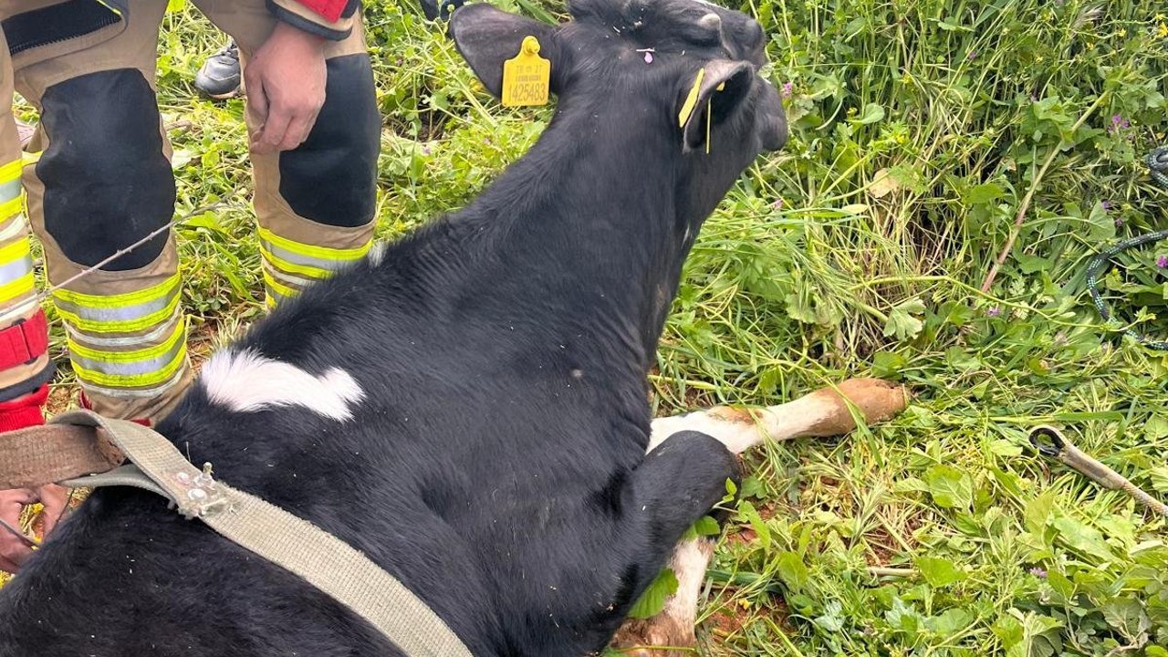 Olay, ilçeye bağlı Bozlu Mahallesi'nde meydana geldi. Otladığı sırada dengesini kaybederek 10 metre derinliğindeki gölete düşen büyükbaş hayvan mahsur kaldı. İhbar üzerine bölgeye sevk edilen ekipler, uzun uğraşlar sonucu hayvanı bulunduğu yerden sağ salim çıkardı. Sağlık durumu iyi olan inek, sahibine teslim edildi.(DHA)