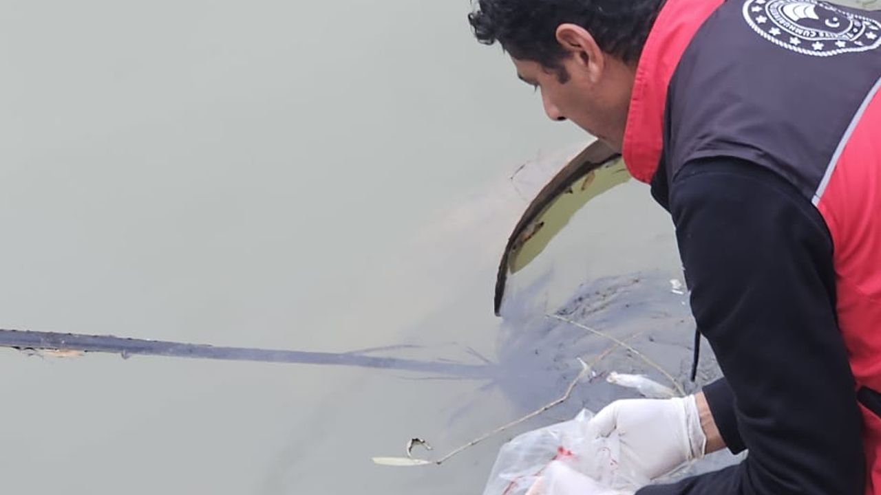 Yunus Cuma YAŞATIR/REYHANLI(Hatay),(DHA)- HATAY'ın Reyhanlı ilçesindeki Yenişehir Gölü'nde balık ölümleri görülmesi üzerine yetkililer sudan numune aldı.