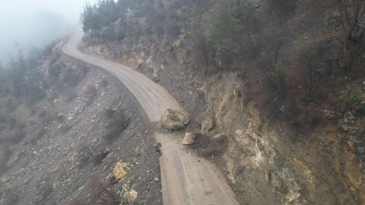 Ali GÖKDAL/FEKE(Adana),(DHA)- ADANA'nın Feke ilçesinde meydana gelen heyelanın ardından yola düşen kaya, ulaşımın durmasına neden oldu.