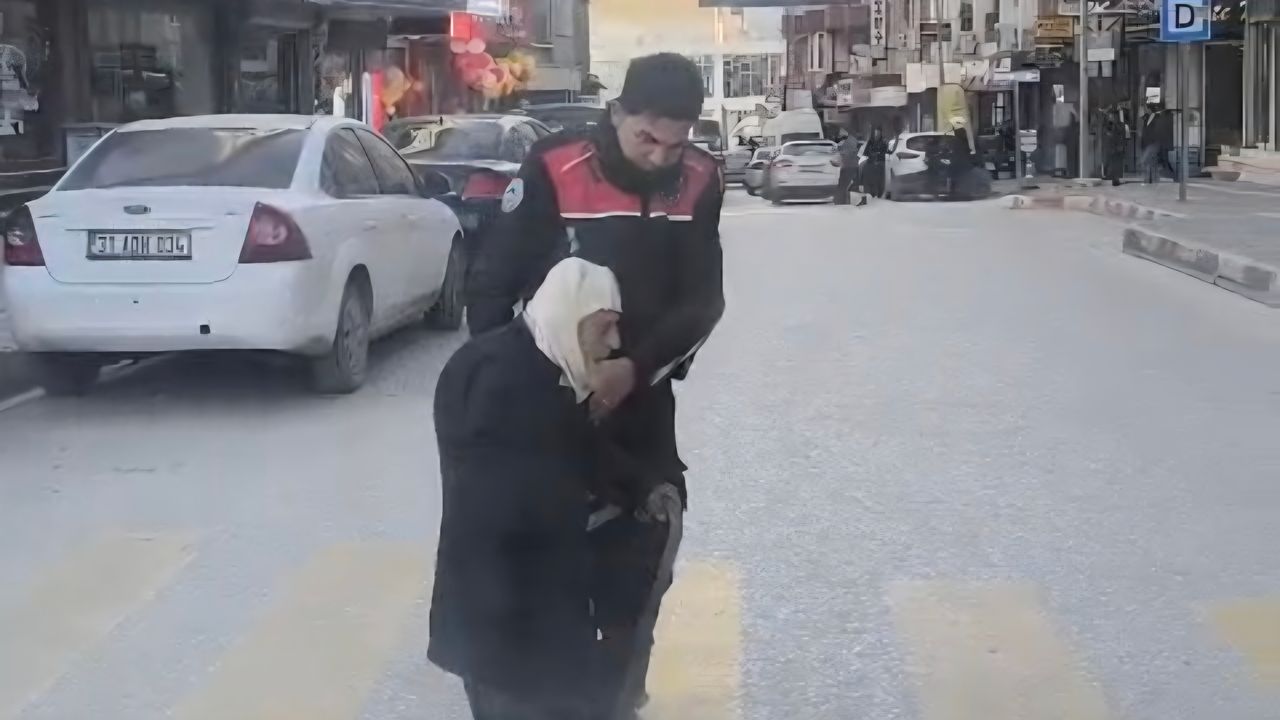 İlçede devriye görevi yapan motorize yunus ekibi, trafiğin yoğun olduğu caddede yaşlı bir erkeğin yolun karşısına geçmekte zorlandığını fark etti. Trafiği kısa süreliğine durduran polis memuru, vatandaşı kolundan tutarak güvenli şekilde yolun karşısına geçirdi. O anlar çevredeki kişiler tarafından cep telefonuyla görüntülendi. (DHA)