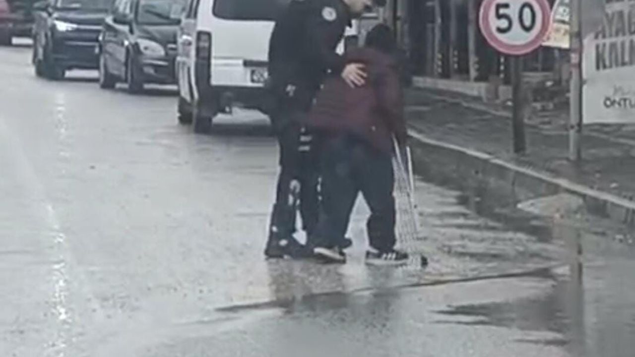 Samandağ ilçesinde yağışlı havanın etkili olduğu saatlerde meydana geldi. İlçede devriye görevi yapan motorize yunus polisi ekipleri, trafiğin yoğun olduğu caddede yolun karşısına geçmekte zorlanan yaşlı ve engelli bir erkeği fark etti. Bunun üzerine ekiplerden bir polis memuru, trafiği kısa süreliğine durdurdu.